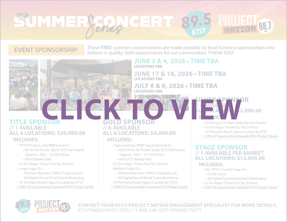 If you are a business or ministry interested in partnering with us on our upcoming 2026 Summer Concert Series, click here to view current sponsorship opportunities or click here to schedule a call with us. We’d love to hear more about your goals and objectives, and to discuss the latest sponsorship opportunities we have.